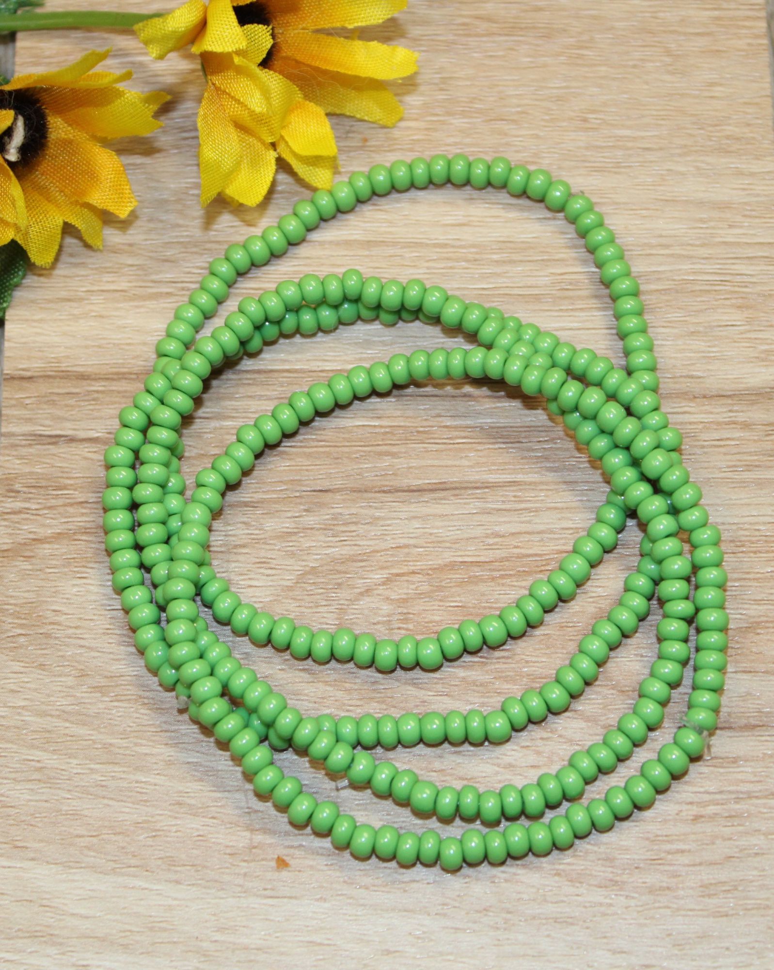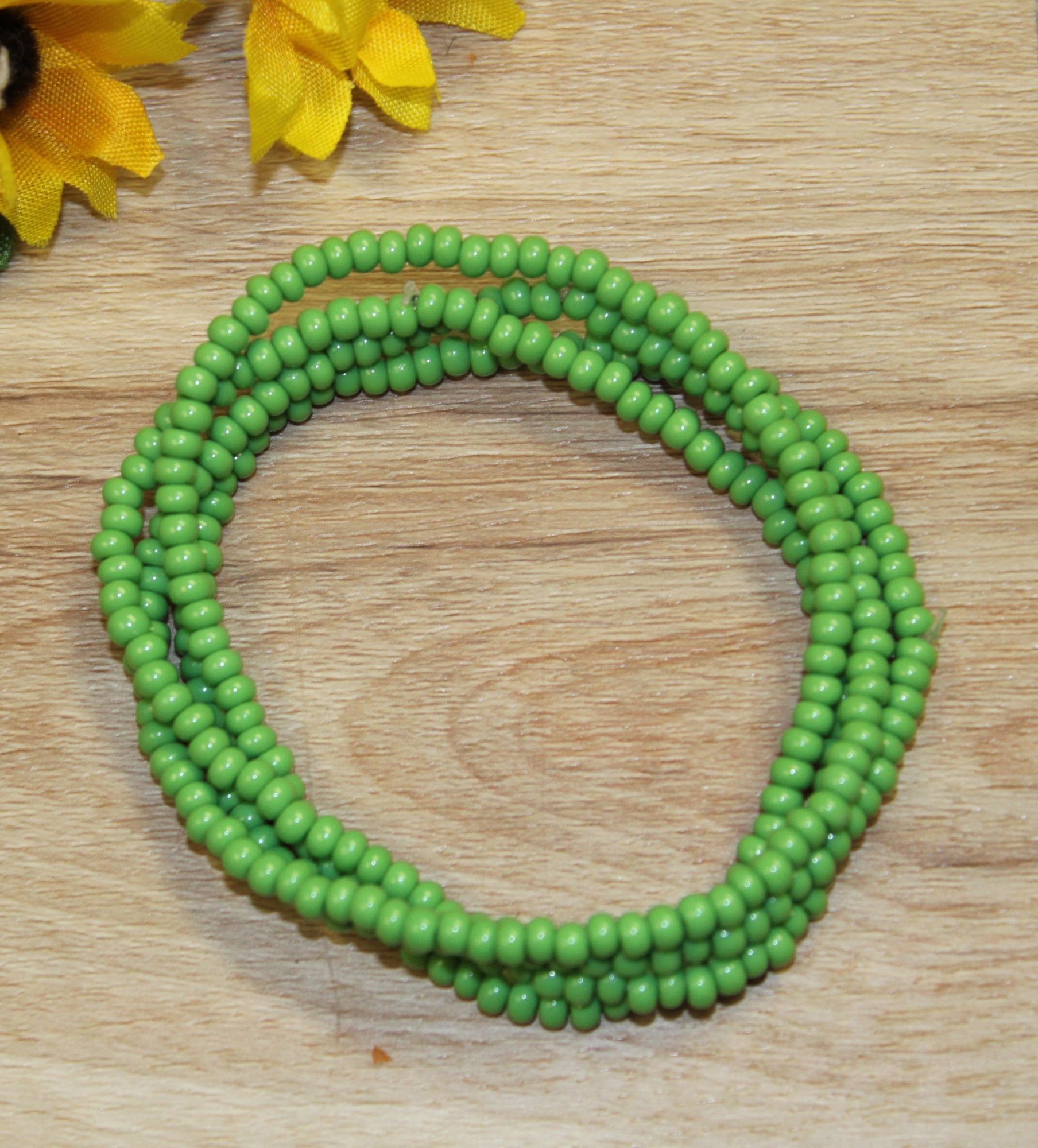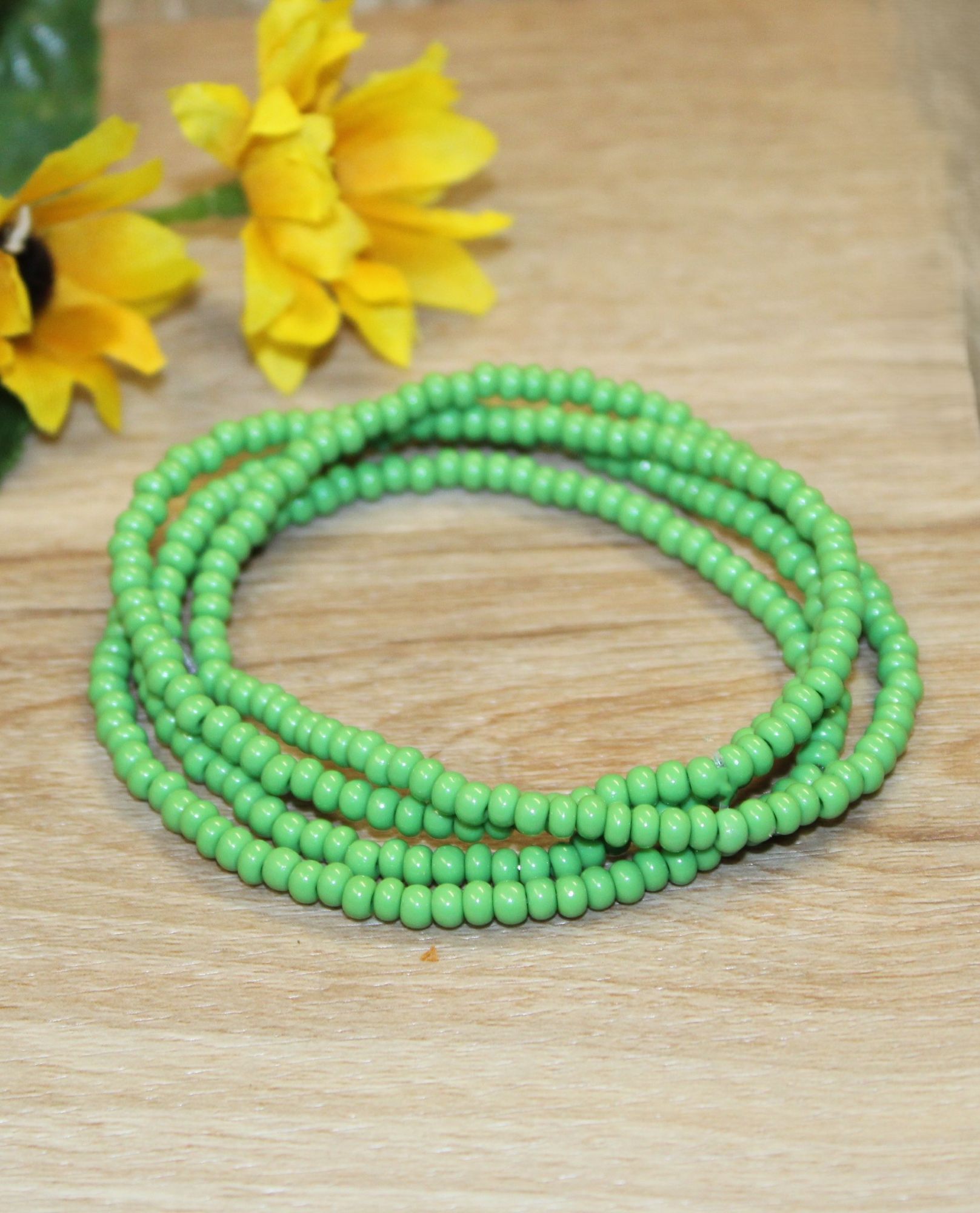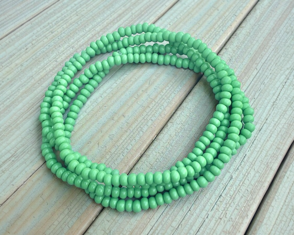 Add one or more of these handmade opaque mint green seed bead bracelets to your stack.